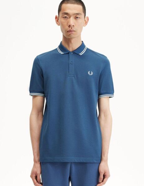 Polo de fred perry en tejido de algodón piqué , con franjas en el cuello y en los brazos ligeramente ajustable .Corona de Laurel bordada en el pecho . Polo elegante para cualquier ocasión .