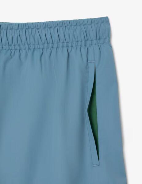 Los bañadores Lacoste azules para hombre ofrecen una variedad de estilos, desde diseños lisos y clásicos hasta opciones con estampados modernos o bloques de color. Confeccionados generalmente en poliéster de secado rápido, muchos incorporan detalles como cintura elástica con cordón ajustable, bolsillos laterales y traseros, y el icónico cocodrilo bordado.