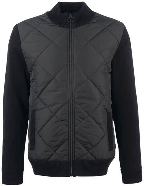 una chaqueta de punto deportiva con un panel frontal acolchado. Las mangas en contraste y el cuello deportivo acanalado